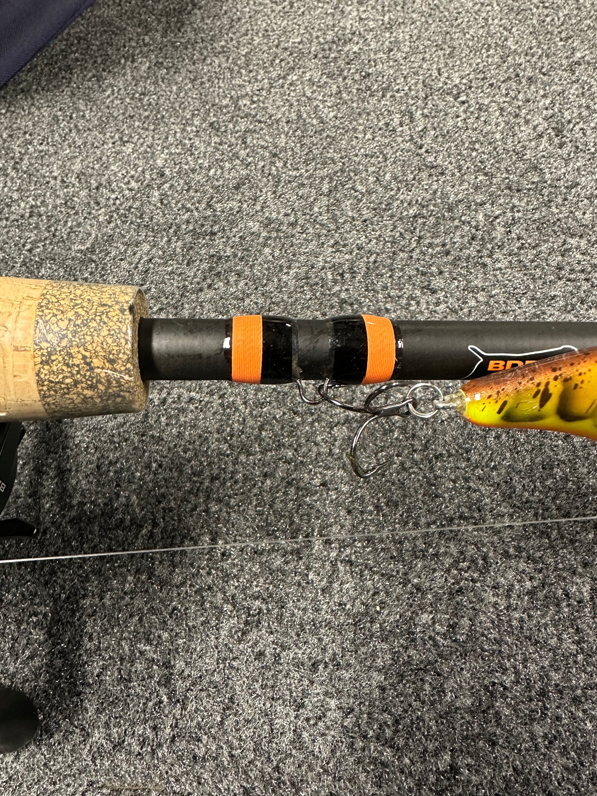 The 873C is a 7’3” medium-heavy rod, designed for a Stupid Tube rig. This rod also works well with a buzzbait. All Bird Dog Rods are constructed from a superior grade carbon fiber graphite, with Alconite guides and a split cork handle.